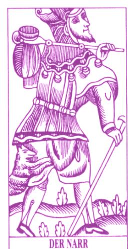 In diesem Weissage-Tarot von ULB Frank-private Astrologie trägt der Narr die Kartenzahl 22, statt, wie sonst auch heruntergebrochen, auf die Kartenzahl 0