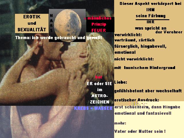 der Mars im Wasser-Zeichen: Krebs; steht für diese Assoziationen: