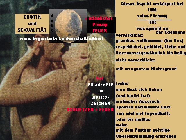 der Mars im Feuer-Zeichen: Schütze; steht für diese Assoziationen: