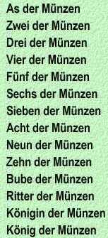 Die Serie der Münzen deuten alles was mit materiellem zu tun hat; auch finanzielle Angelegenheiten. Dein Geld, der Job, materieller Gewinn kommt mit dieser Energie zum Ausdruck. Hier erhält Handel und Gewerbe den richtigen Schub. Privat sollte hier Sensibilität angesprochen sein, Verwicklungen sind möglich.
