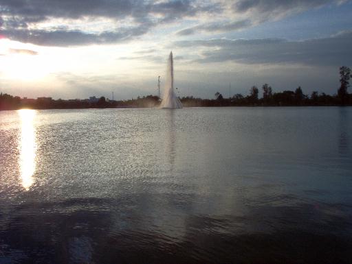 Diesen schönen Sonnenuntergang mit gleichzeitig aufsteigender Wasser- säule konnten wir in Sakhon Nakhon beobachten.